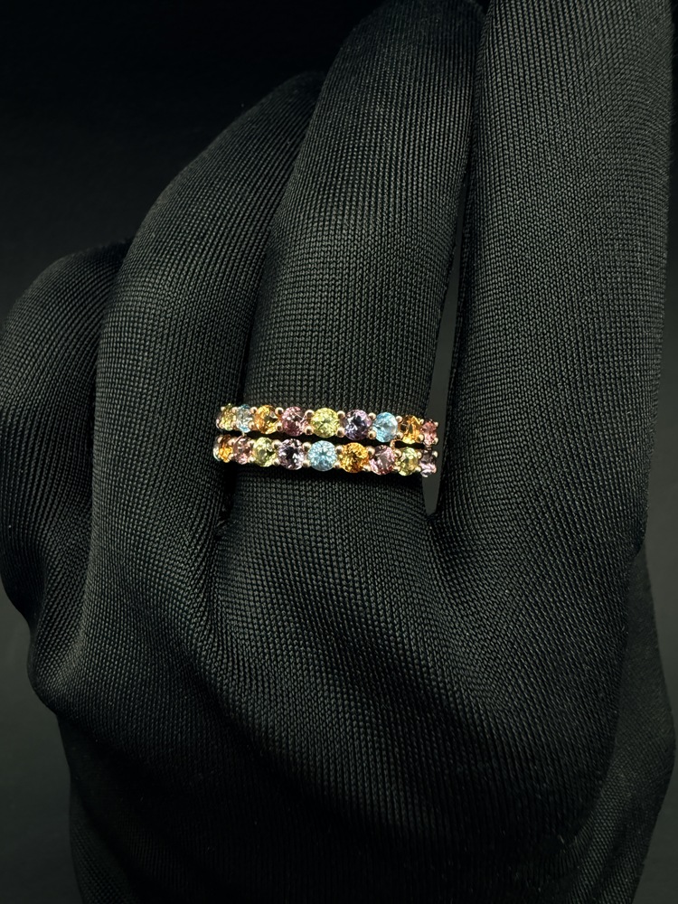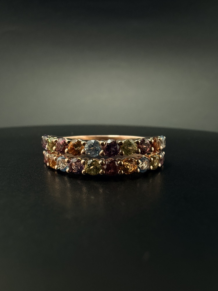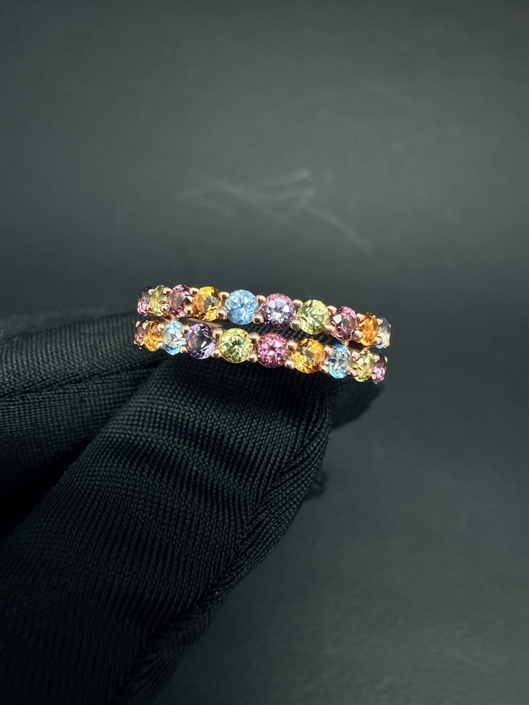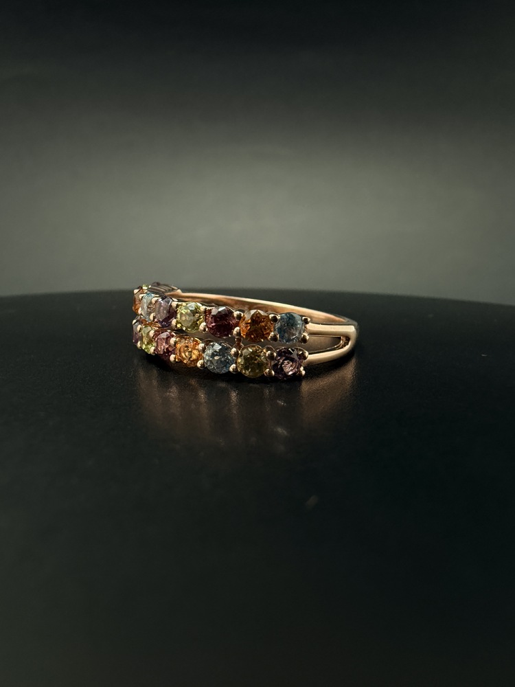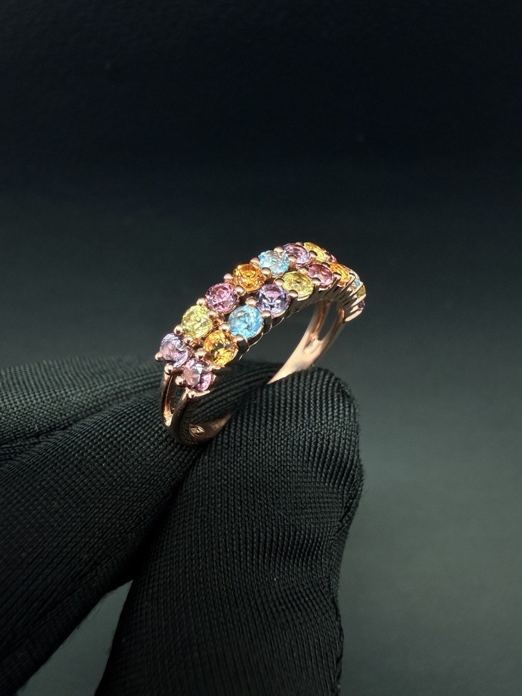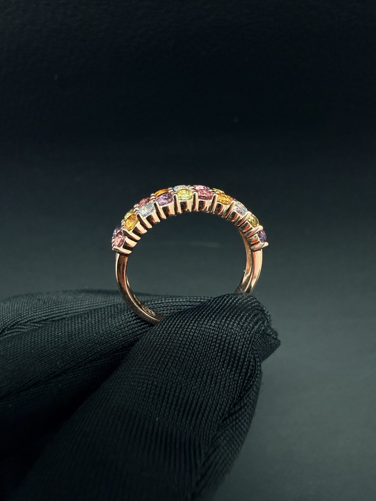 Каблучка золота 585 проби в червоному золоті з різнокольоровими цирконами