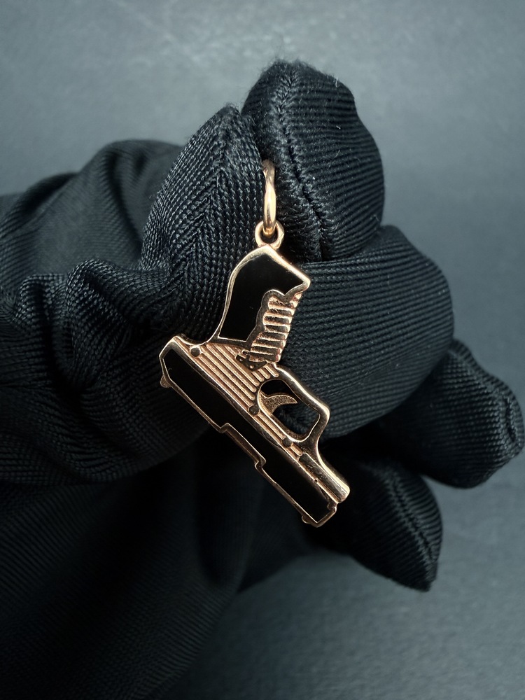 Підвіс золотий “Пістолет” 585 проби з емаллю