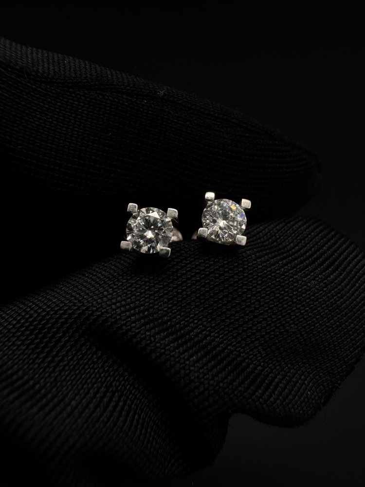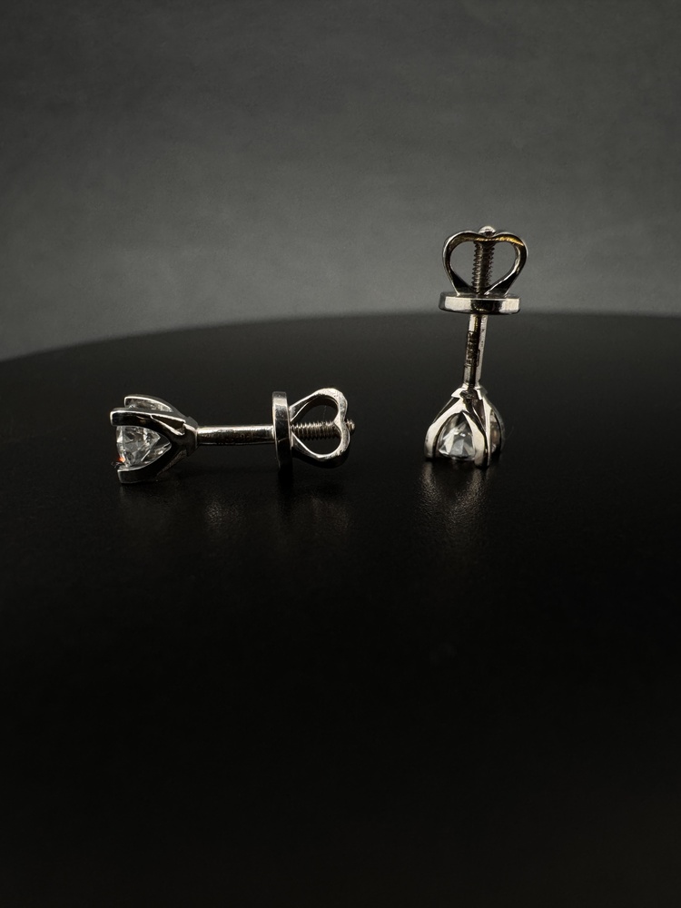 Сережки пусети золоті з діамантами 585 проби в білому золоті